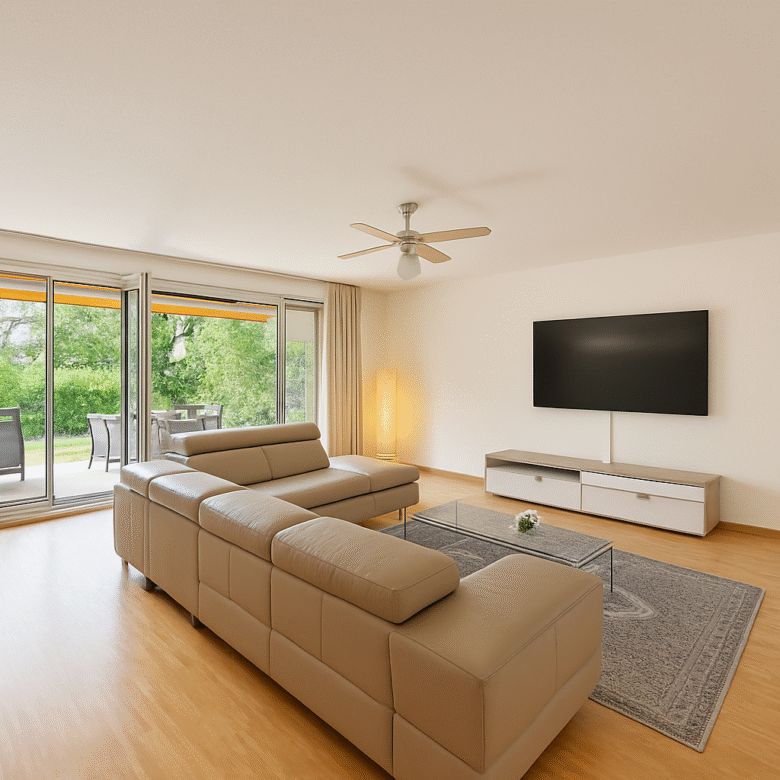 Situé en rez-de-chaussée, l’appartement bénéficie d’une luminosité naturelle remarquable grâce à ses larges baies vitrées et son accès à la terrasse depuis chaque pièce.